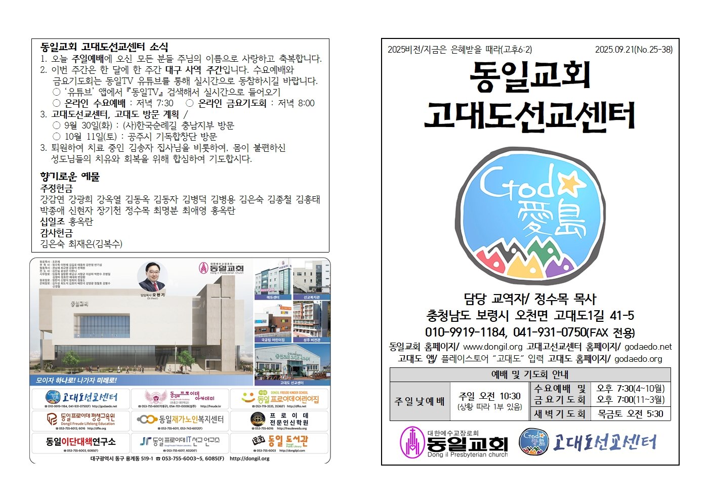 2025년 09월 21일 제25-38호최근소식 / 글쓴이 고대도 선교센터장 Related posts:2025년 11월 30일 제25-48호2025-11-292025년 11월 23일 제25-47호(추수감사절)2025-11-222025년 11월 16일 제25-46호2025-11-152025년 11월 09일 제25-45호2025-11-082025년 11월 02일 제25-44호(행복온데이축제)2025-11-012025년 10월 26일 제25-43호(종교개혁기념주일)2025-10-252025년 10월 19일 제25-42호2025-10-182025년 10월 12일 제25-41호2025-10-112025년 10월 05일 제25-40호2025-10-042025년 09월 28일 제25-39호2025-10-042025년 09월 14일 제25-37호2025-09-132025년 09월 07일 제25-36호2025-09-062025년 08월 31일 제25-35호2025-08-302025년 08월 24일 제25-34호2025-08-232025년 08월 17일 제25-33호2025-08-162025년 08월 10일 제25-32호2025-08-092025년 08월 03일 제25-31호2025-08-022025년 07월 27일 제25-30호2025-07-262025년 07월 20일 제25-29호2025-07-192025년 07월 13일 제25-28호2025-07-19